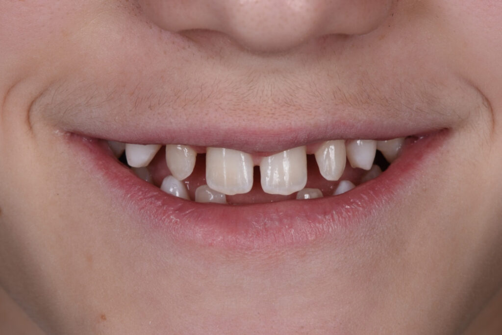 Tratamiento de carillas de composites para un niño que padece agenesias dentales múltiples